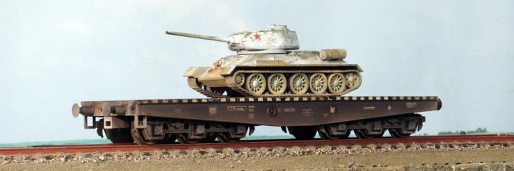 Beladed mit T34/85 Tank ( 1:100) geältert (winter camo)